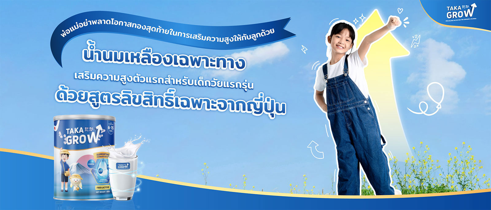 TakaGrow คือ นมผงชนิดพิเศษที่ช่วยเพิ่มความสูงสำหรับเด็กวัยรุ่นสูตรพิเศษจากญี่ปุ่น ซึ่งได้รับการวิจัยมากว่า 15 ปีเพื่อให้เหมาะสมกับการพัฒนาความสูงของเด็กไทย